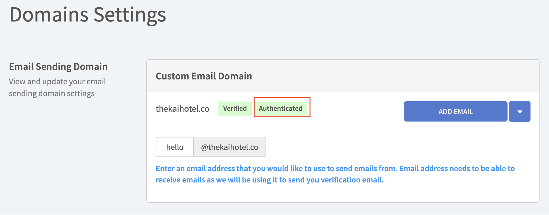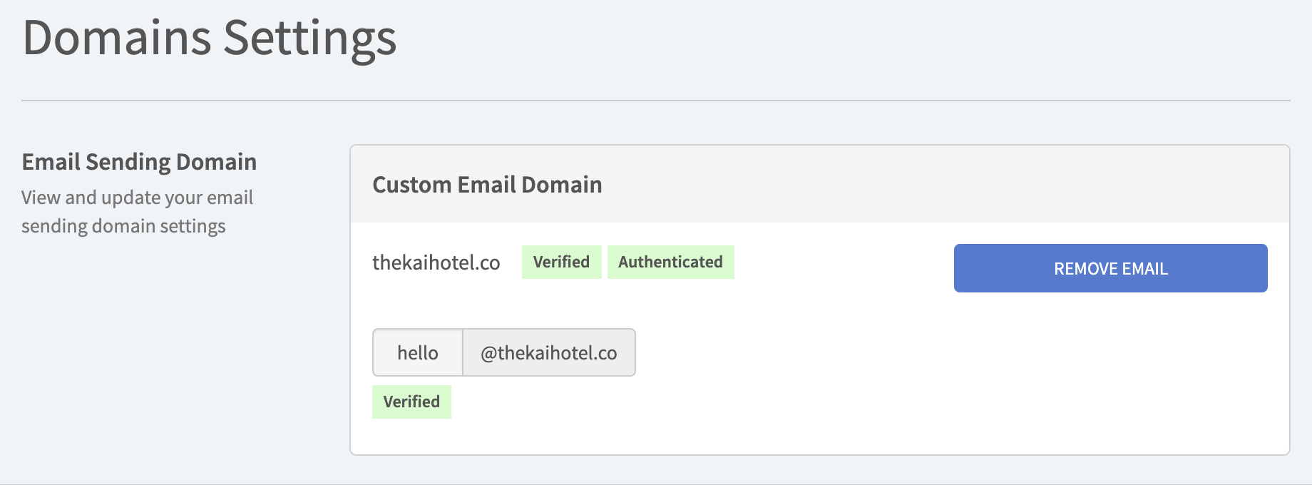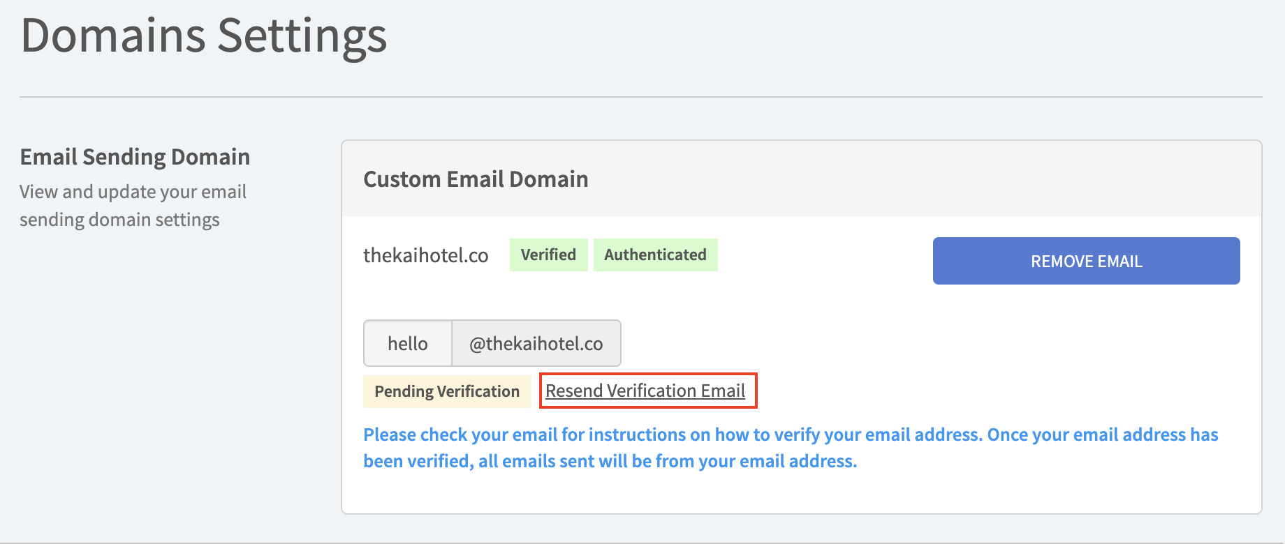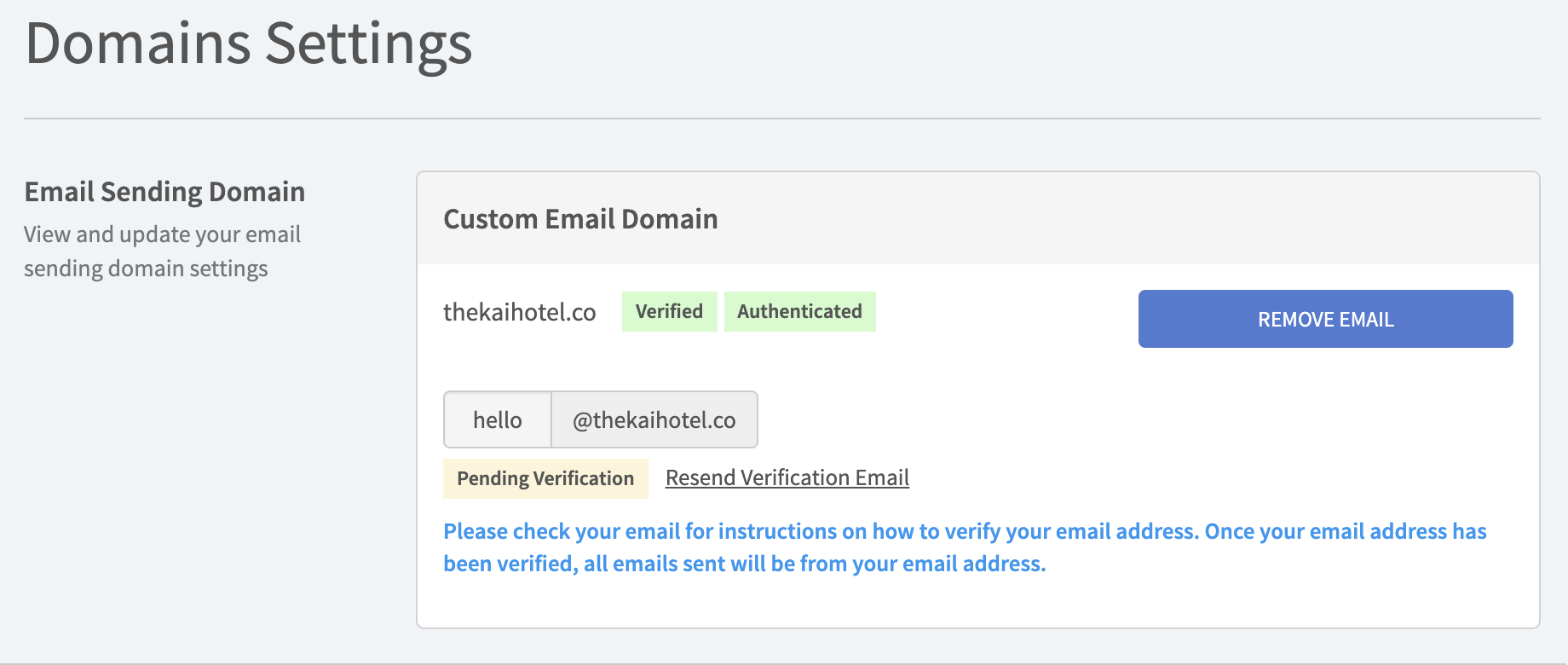 Congratulations, you have completed the custom email domain configurations. All Guest Journey Emails will now be sent from this email address.