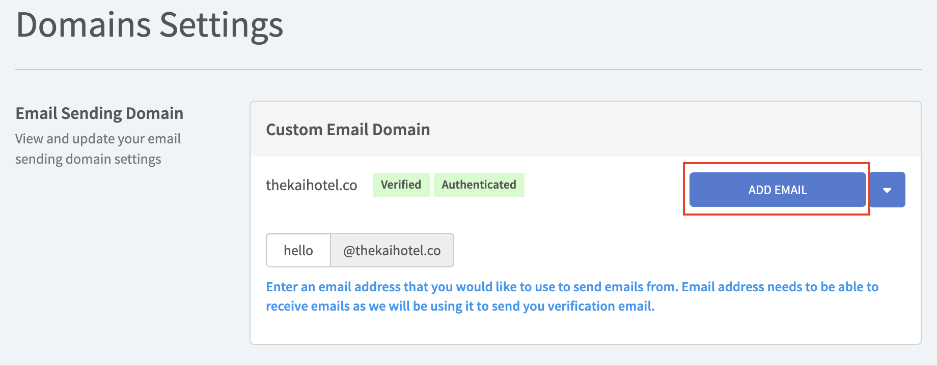 1. Add Custom Email Domain