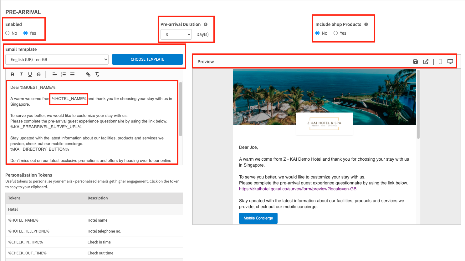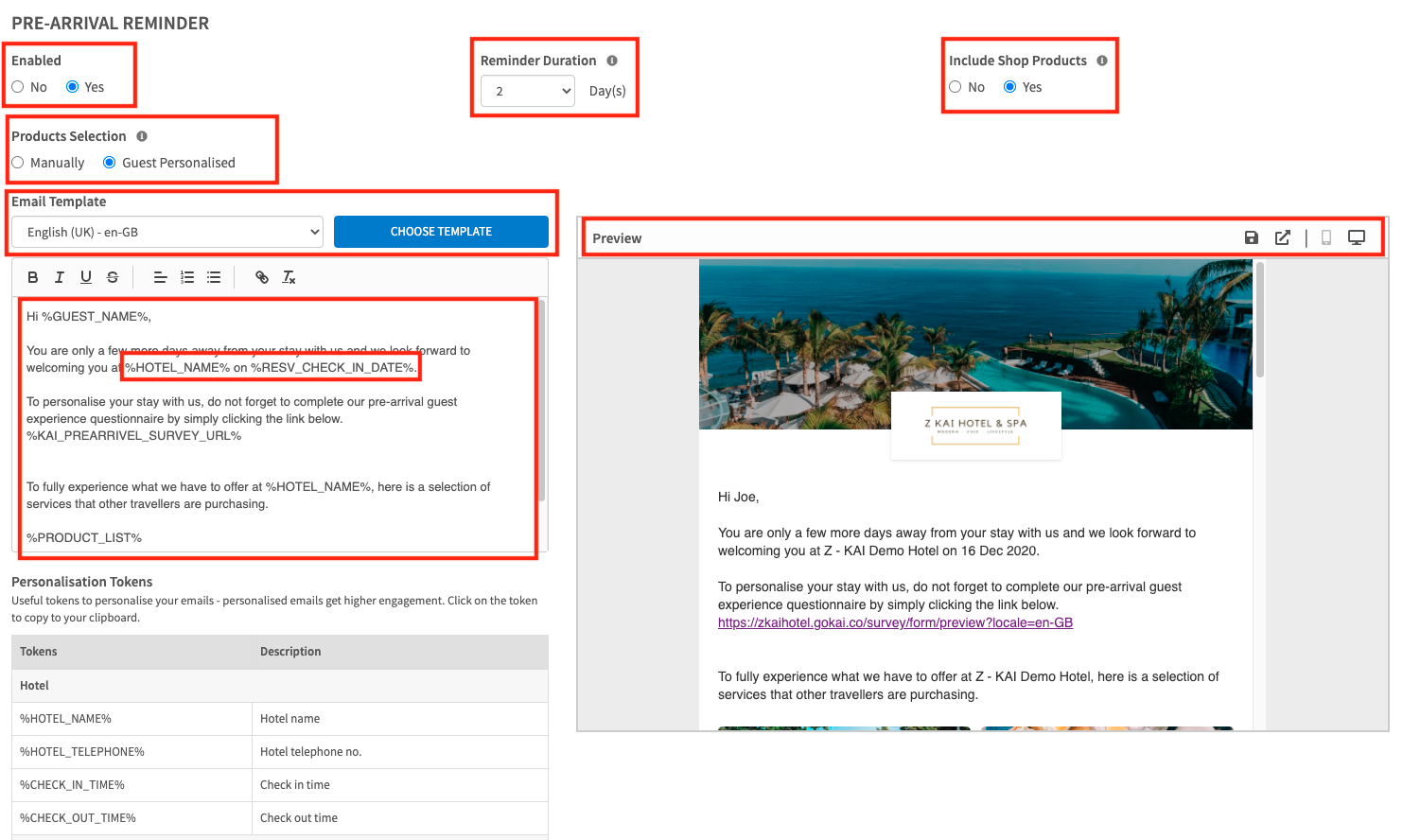 - Choose to insert products or not (Recommend not to insert in pre-arrival email)
