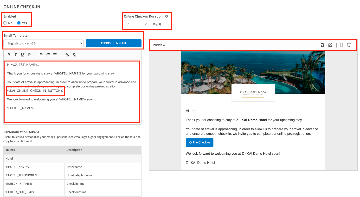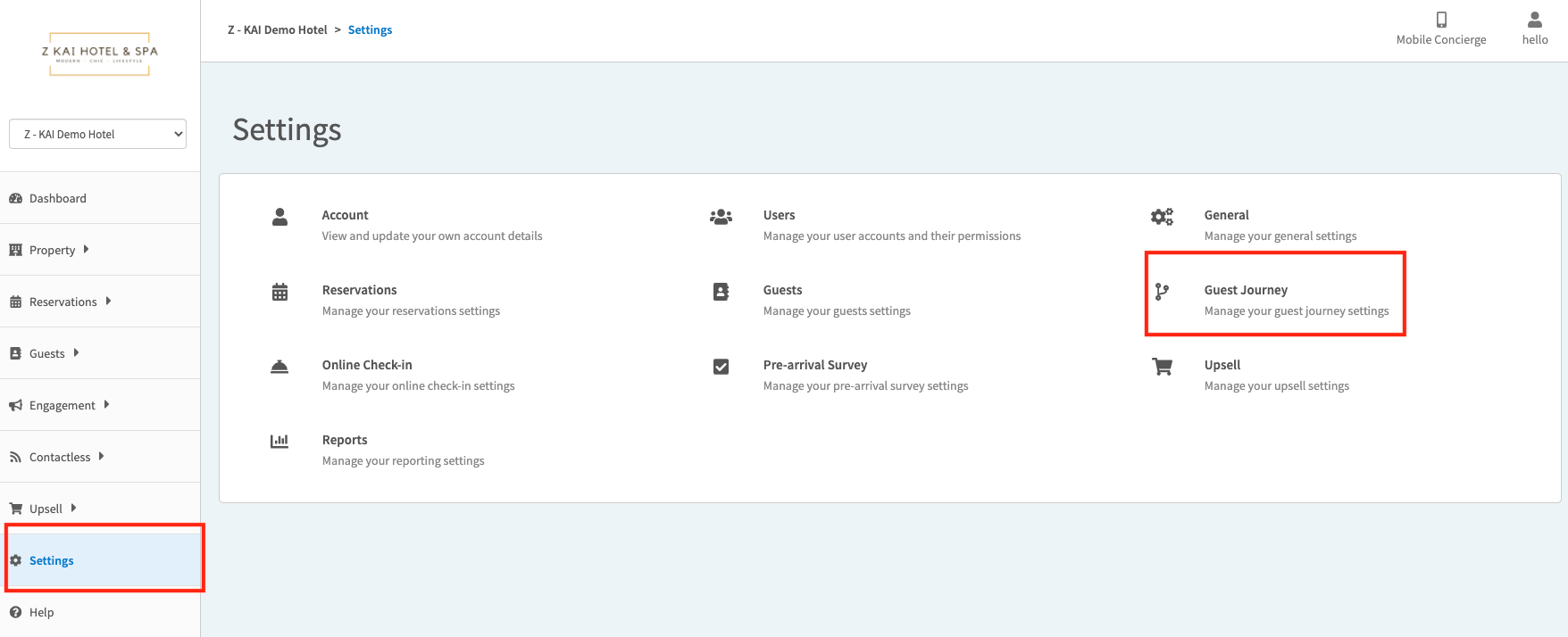 From here, you can enable/disable each stage of the guest journey and customize the templates.