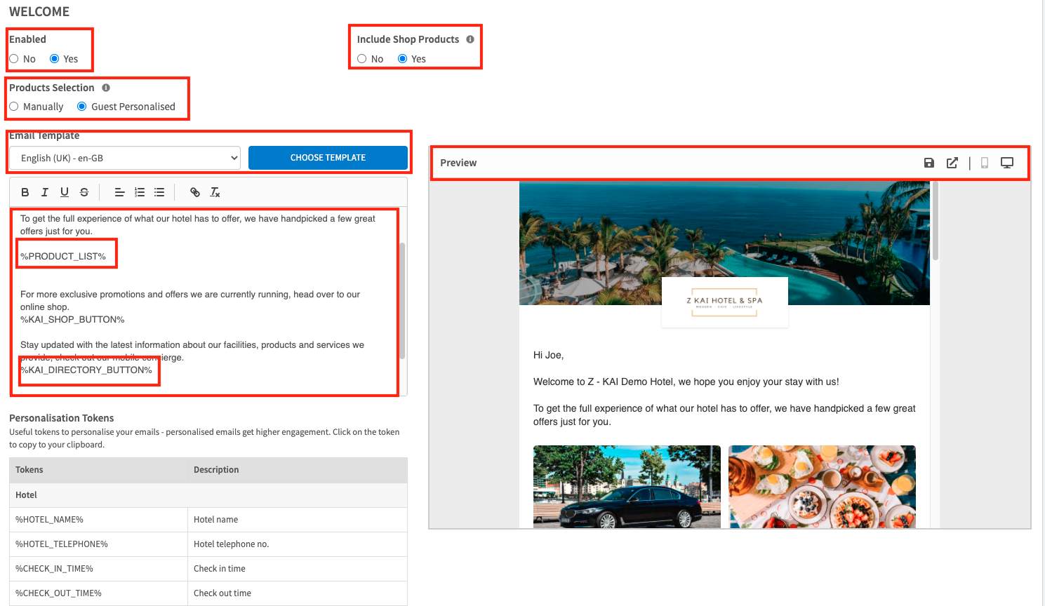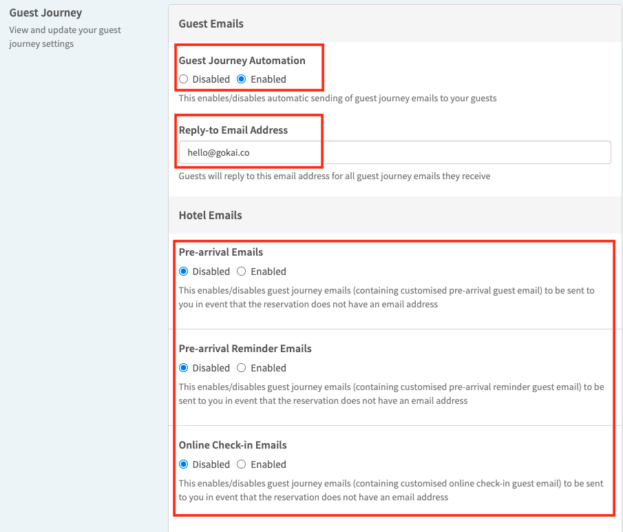 * Once you completed this setting, KAI starts sending emails. If you are not ready to send emails to the guests, please do not enable the Guest Journey Automation.
