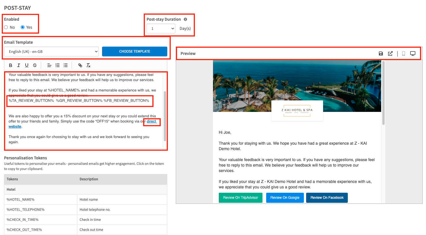 - Set Reply-to Email for guest to reply to the guest journey emails.