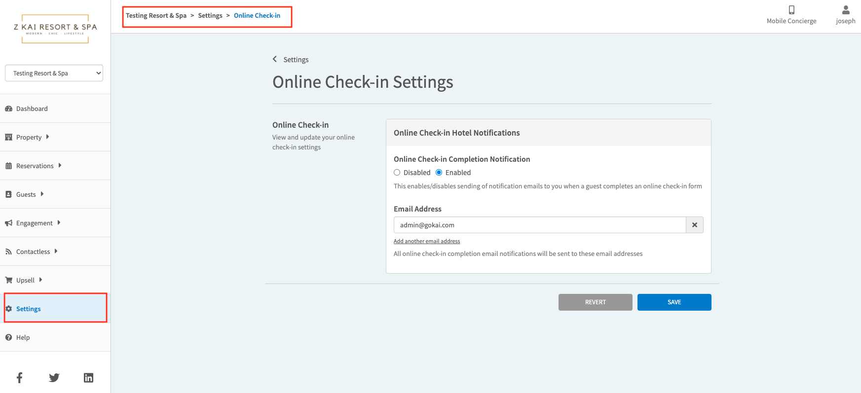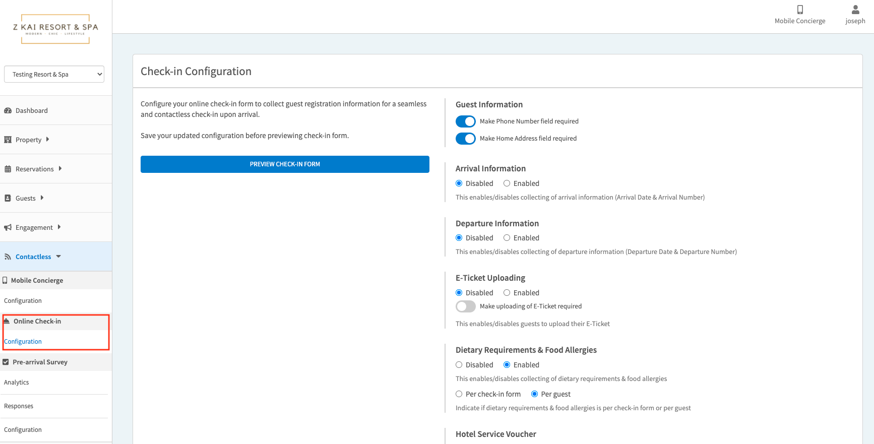 Engagement -> Guest Journey -> Configuration -> Online Check-in
